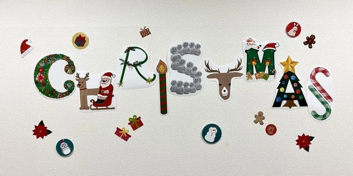 サンタクロースやトナカイ、モミの木やキャンドルなど、 クリスマスらしい要素を取り入れつつ、文字としても読めるように工夫されています!